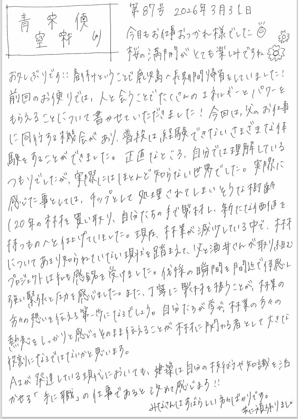 鹿児島市立中山小学校へ寄贈した木材が活用されました。